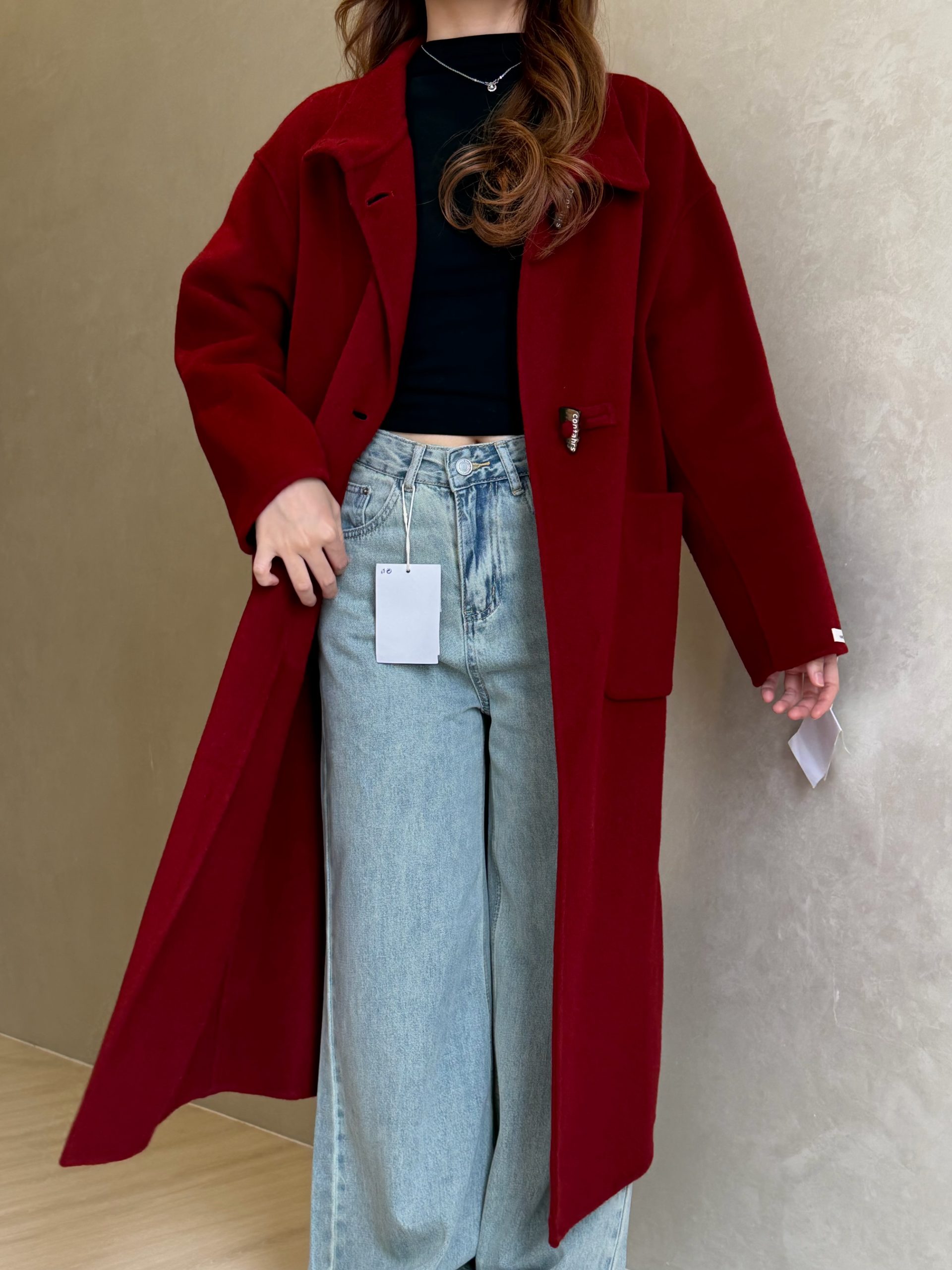 立领中长款双面羊绒大衣