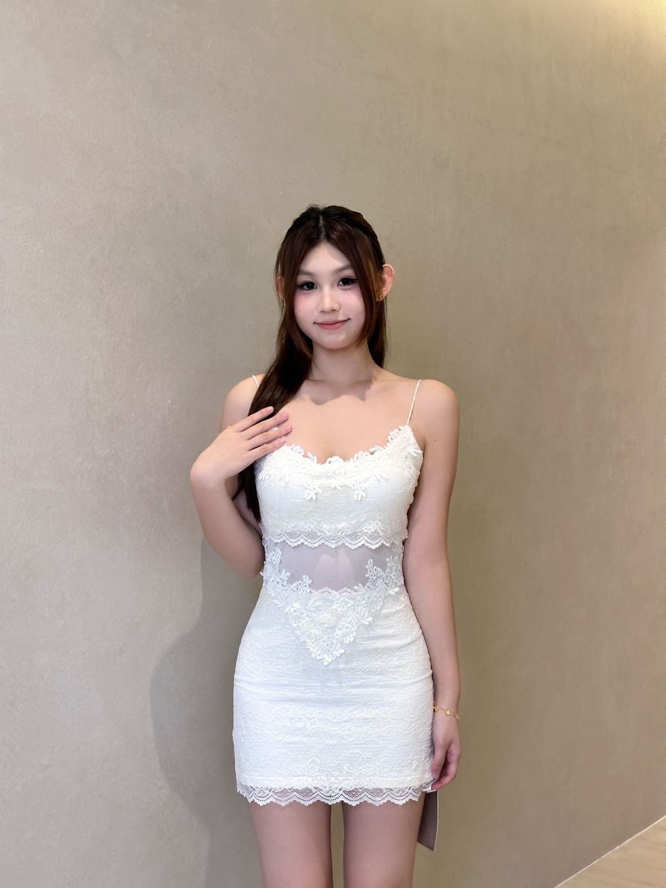 性感低领蕾丝露肩吊带裙