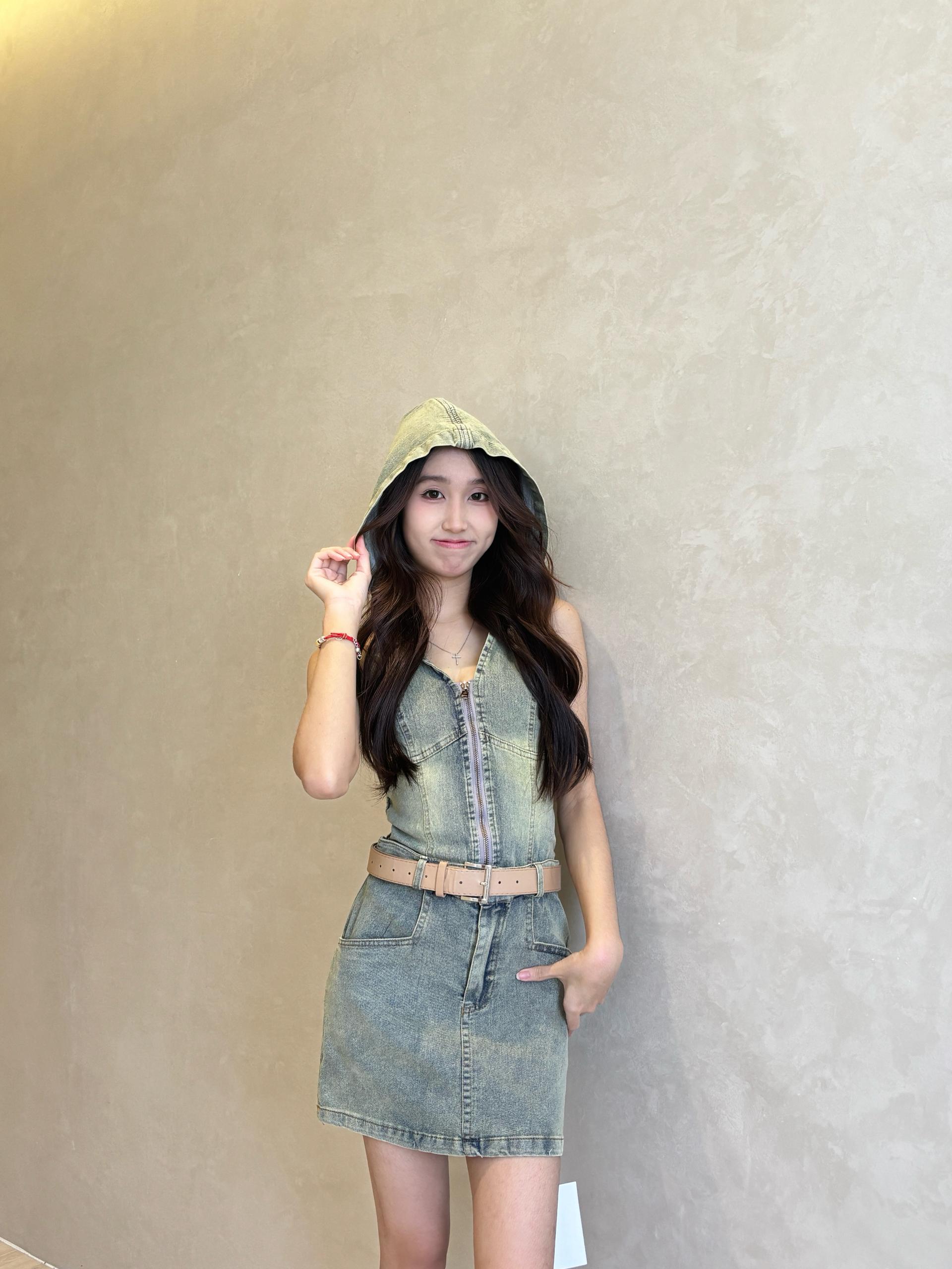 牛仔连帽无袖拉链背心短裙