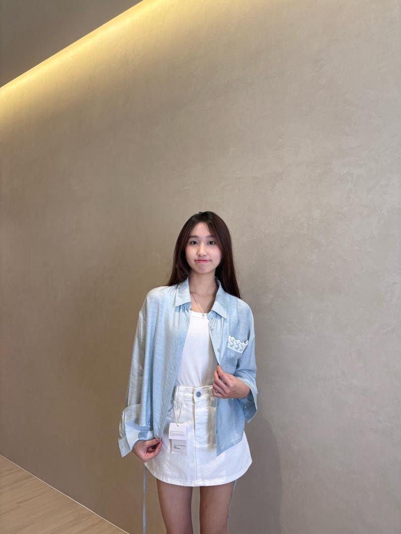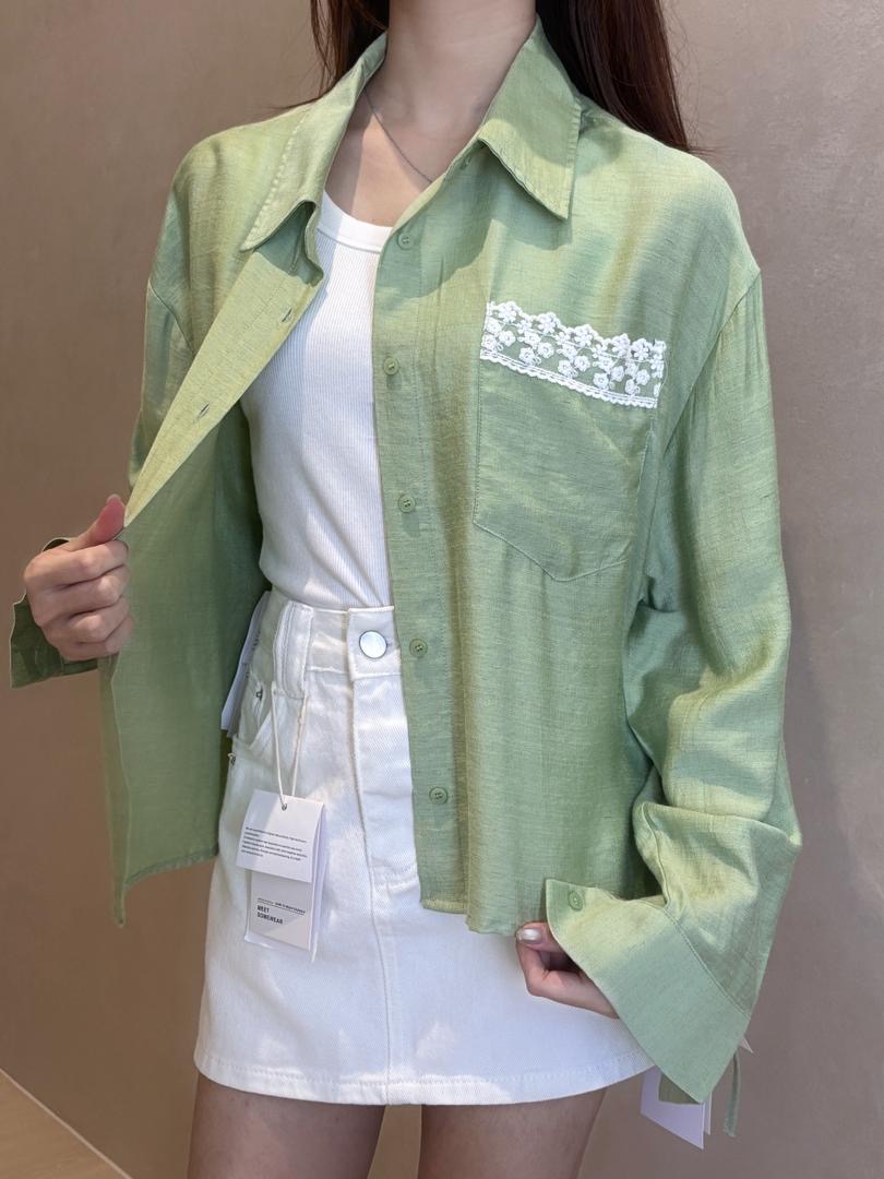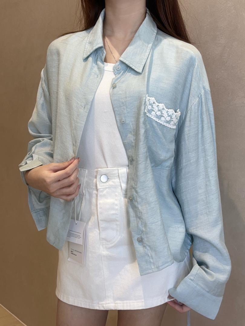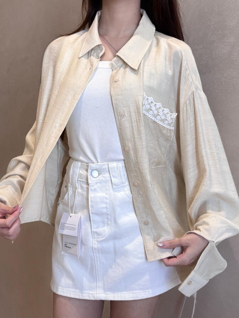 花边口袋防晒衬衣