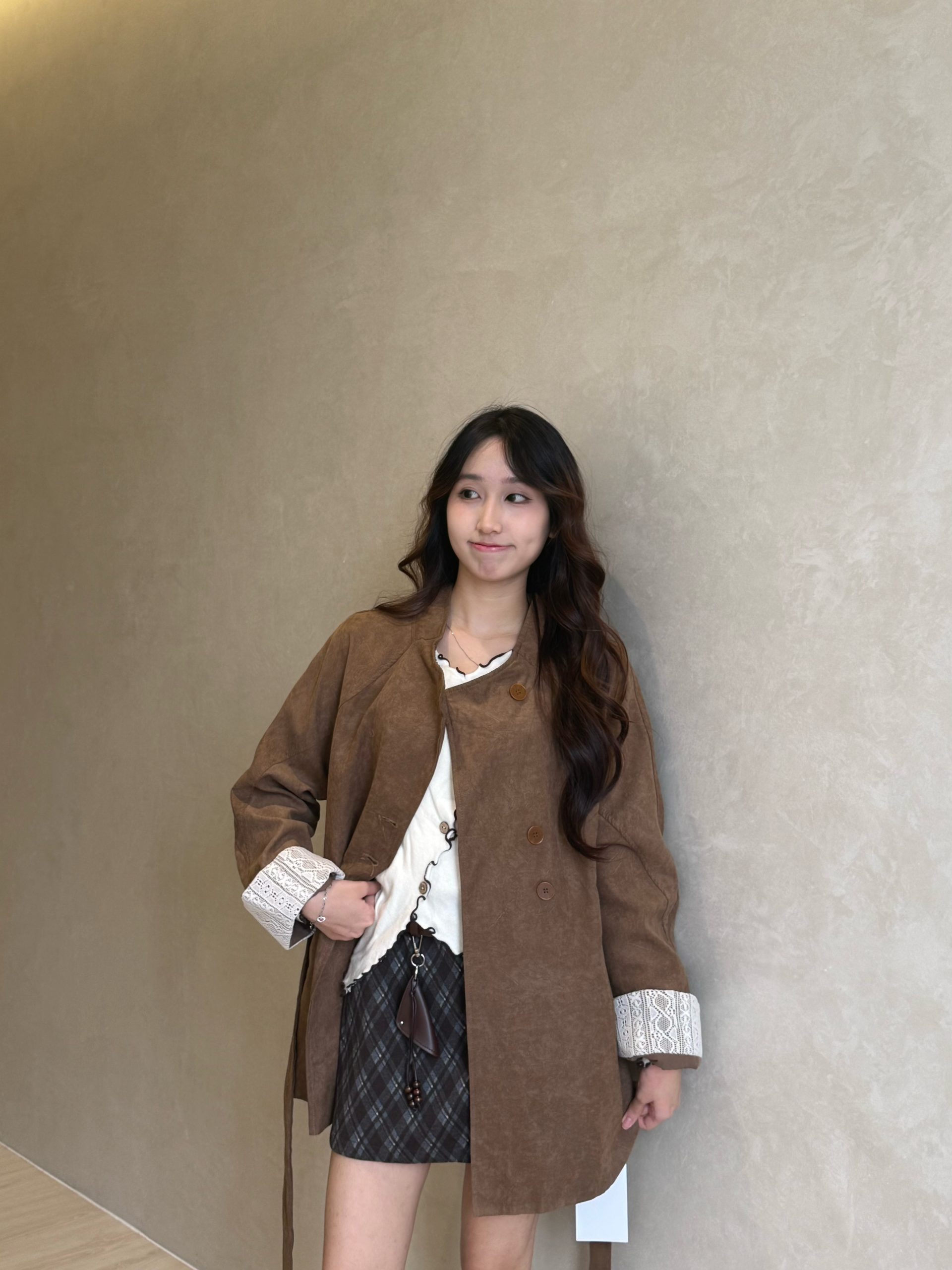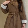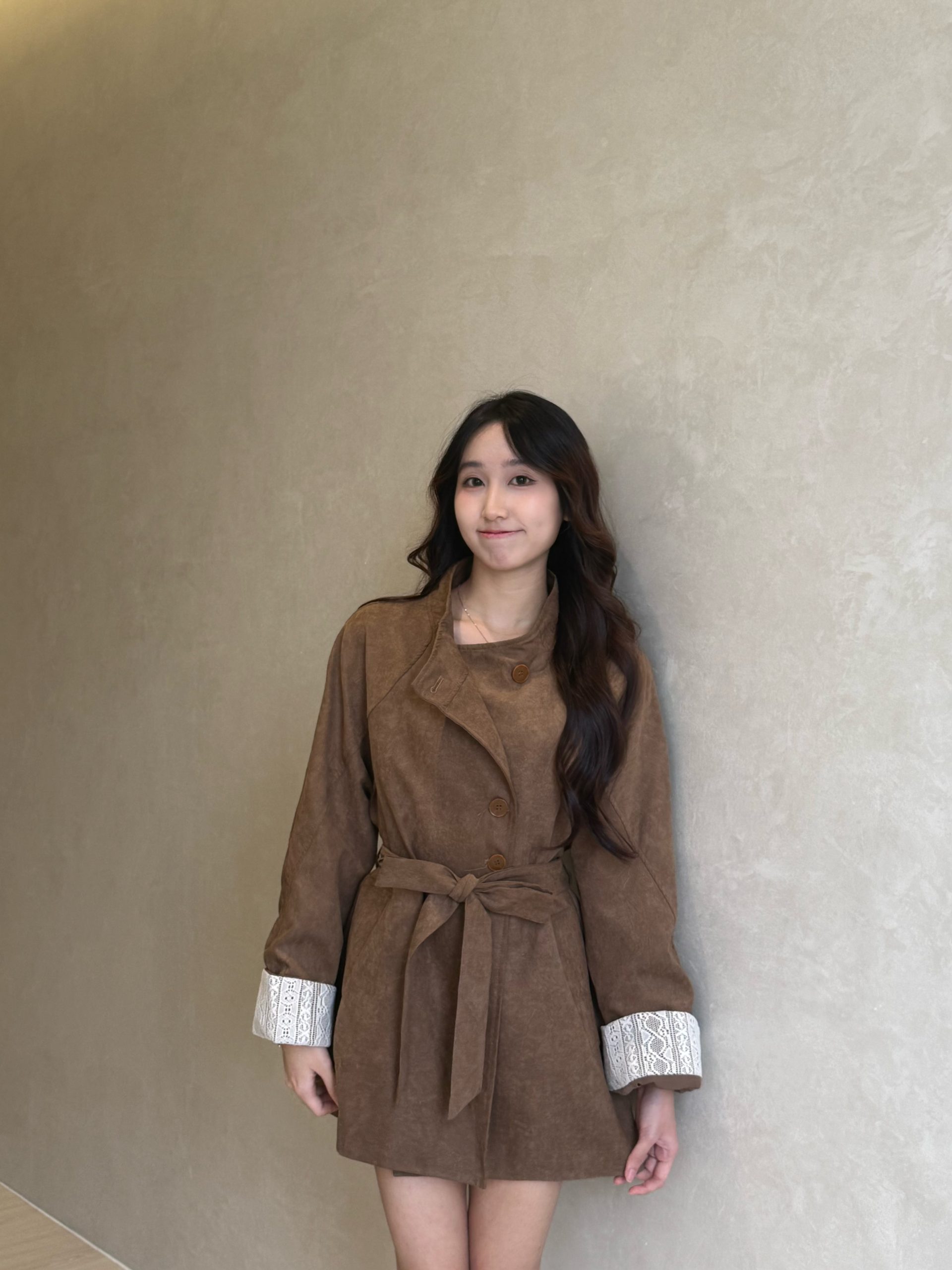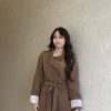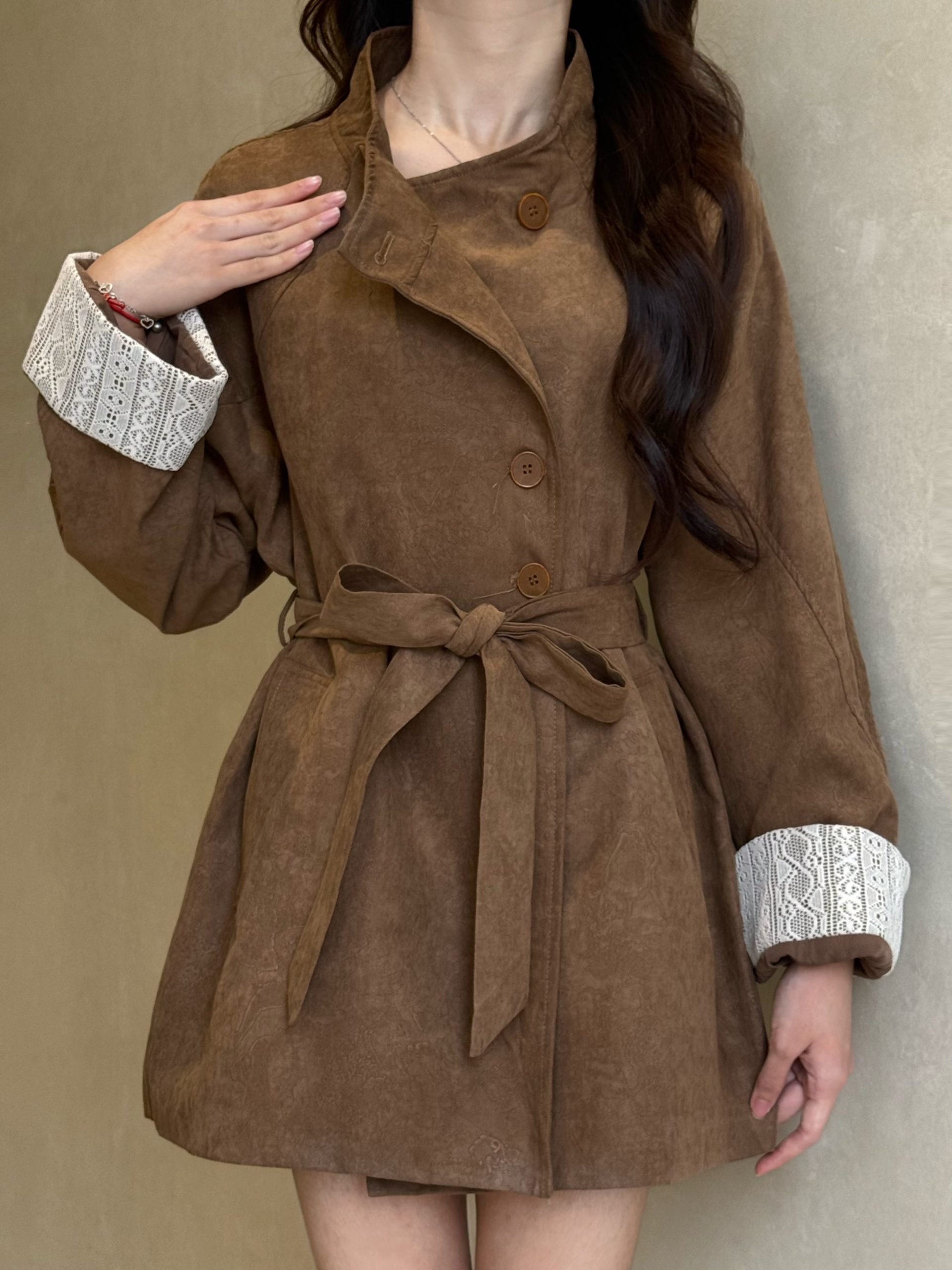韩系立领中长款绑带风衣外套