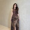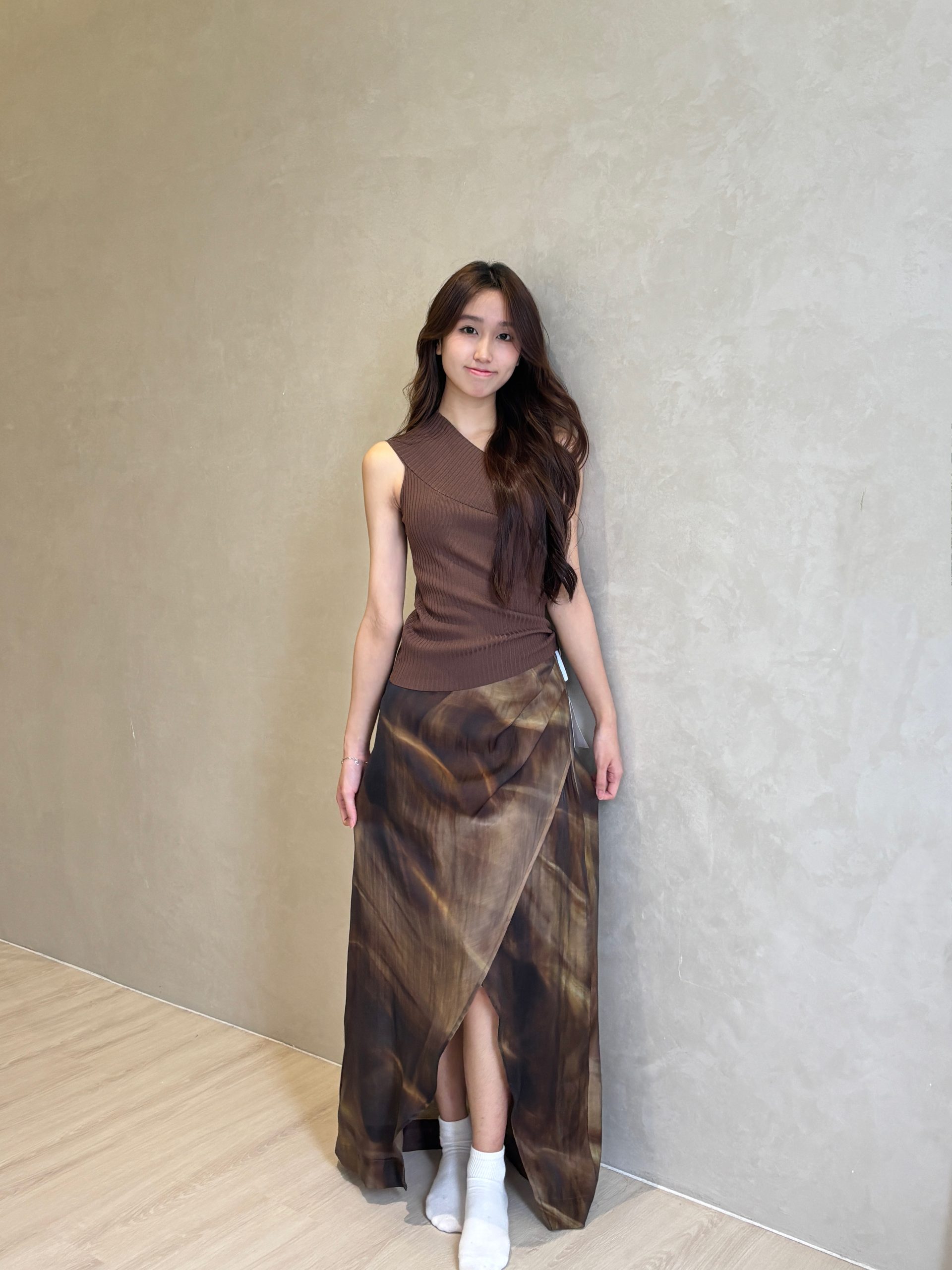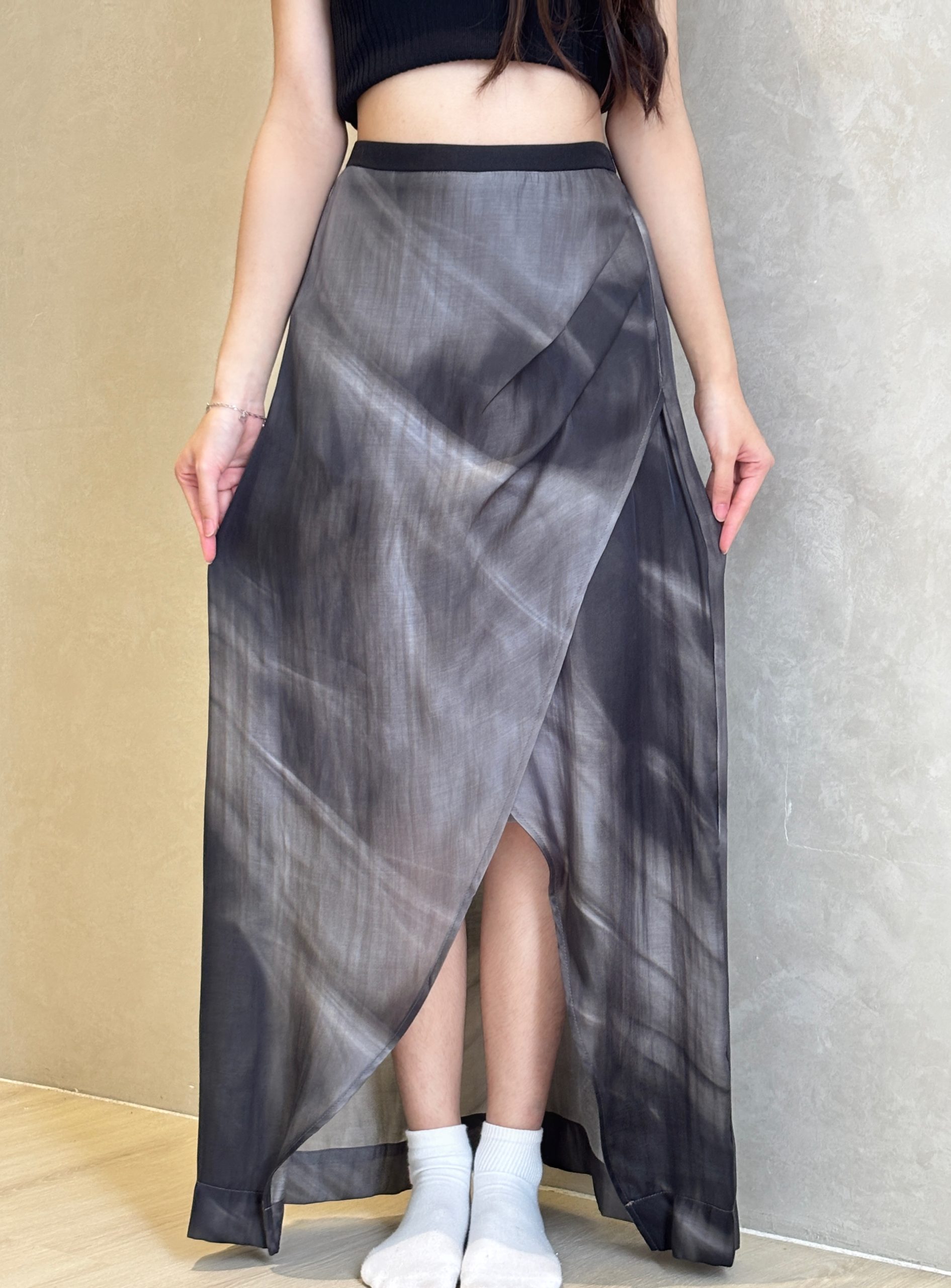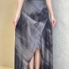 晕染开叉印花半身裙