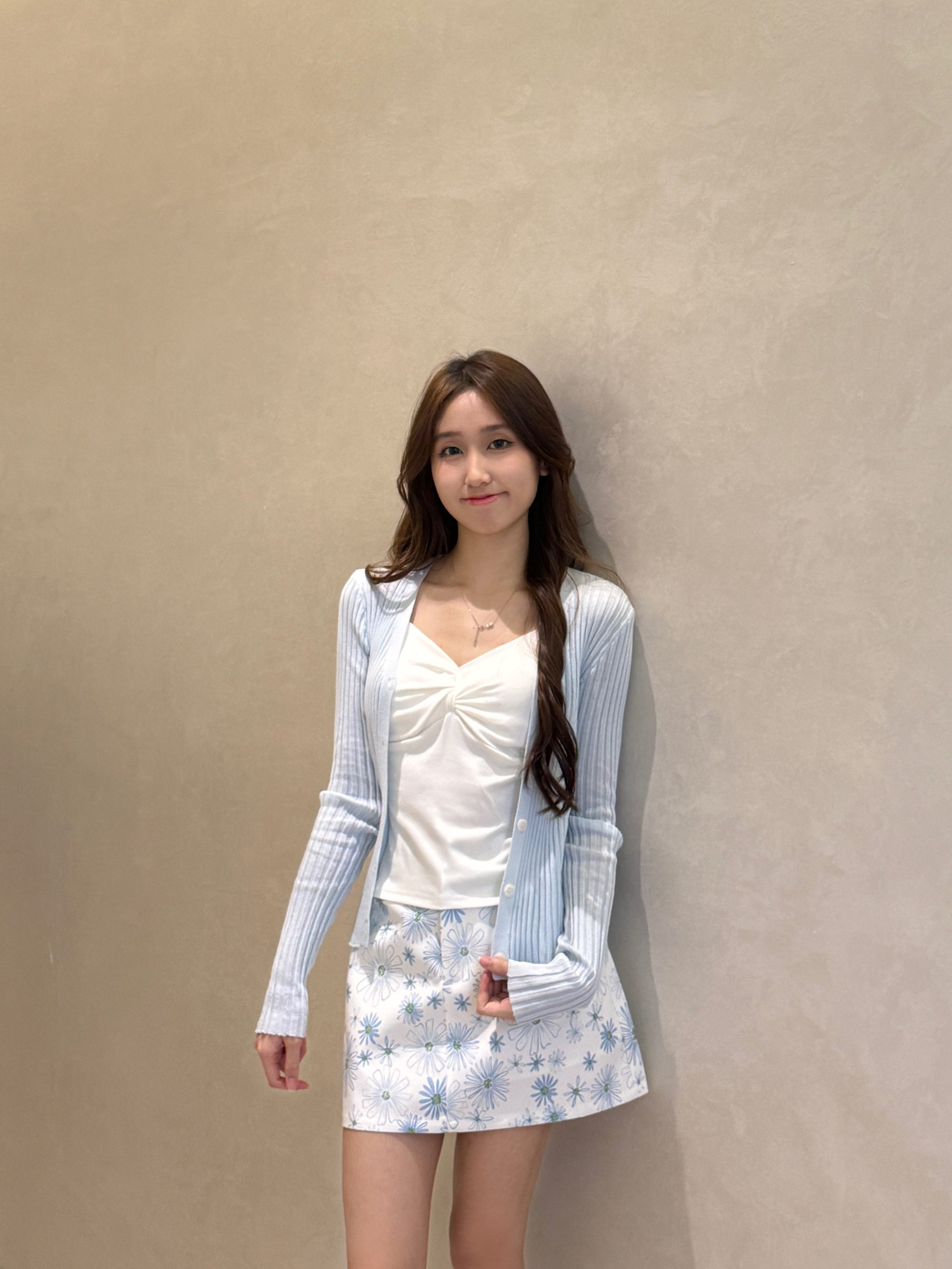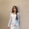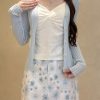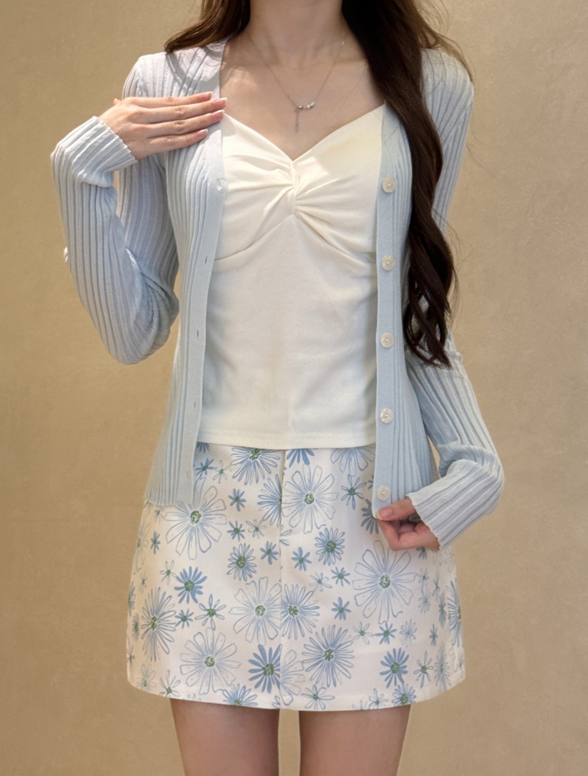 竖条针织开衫+吊带背心+雏菊印花半身裙三件套