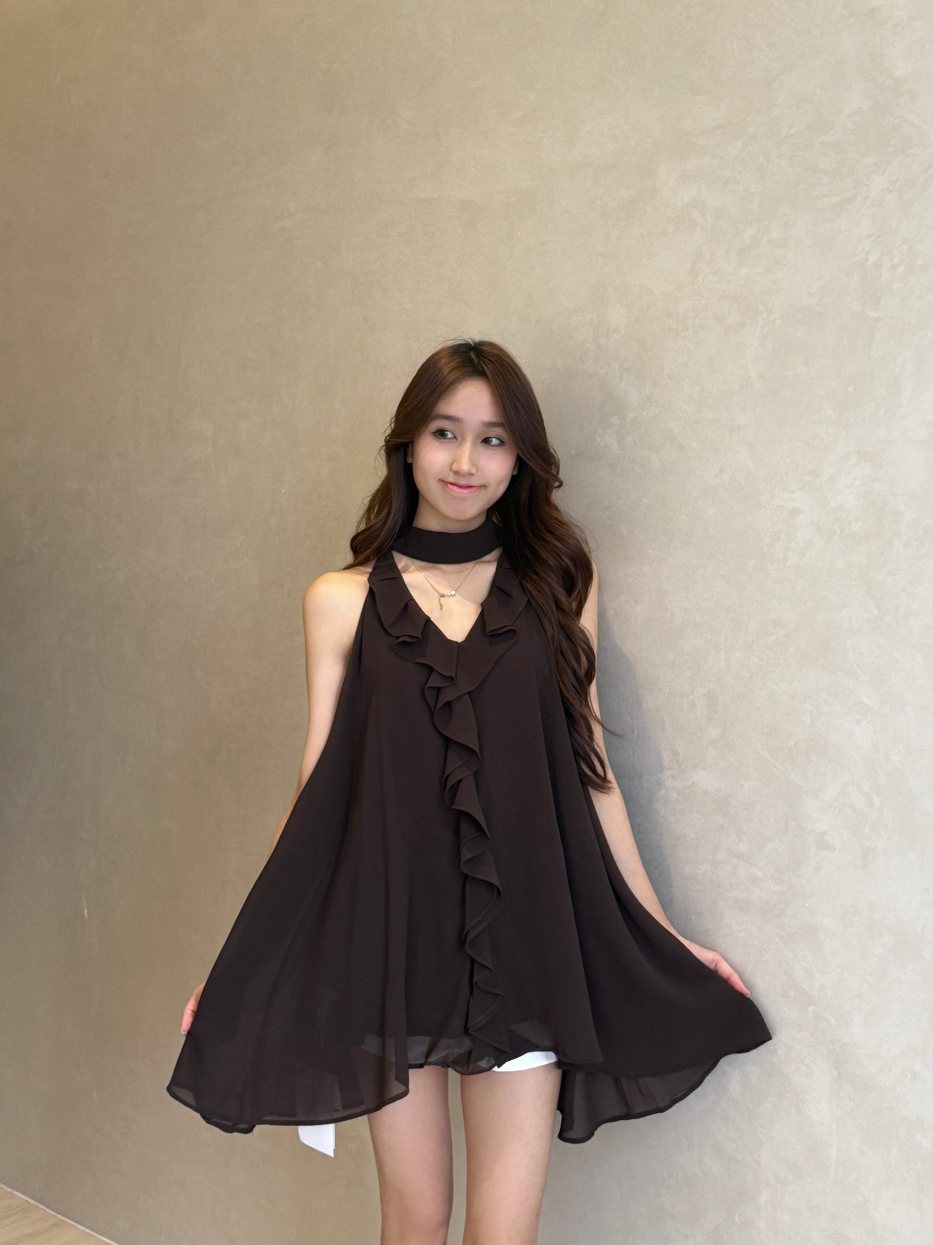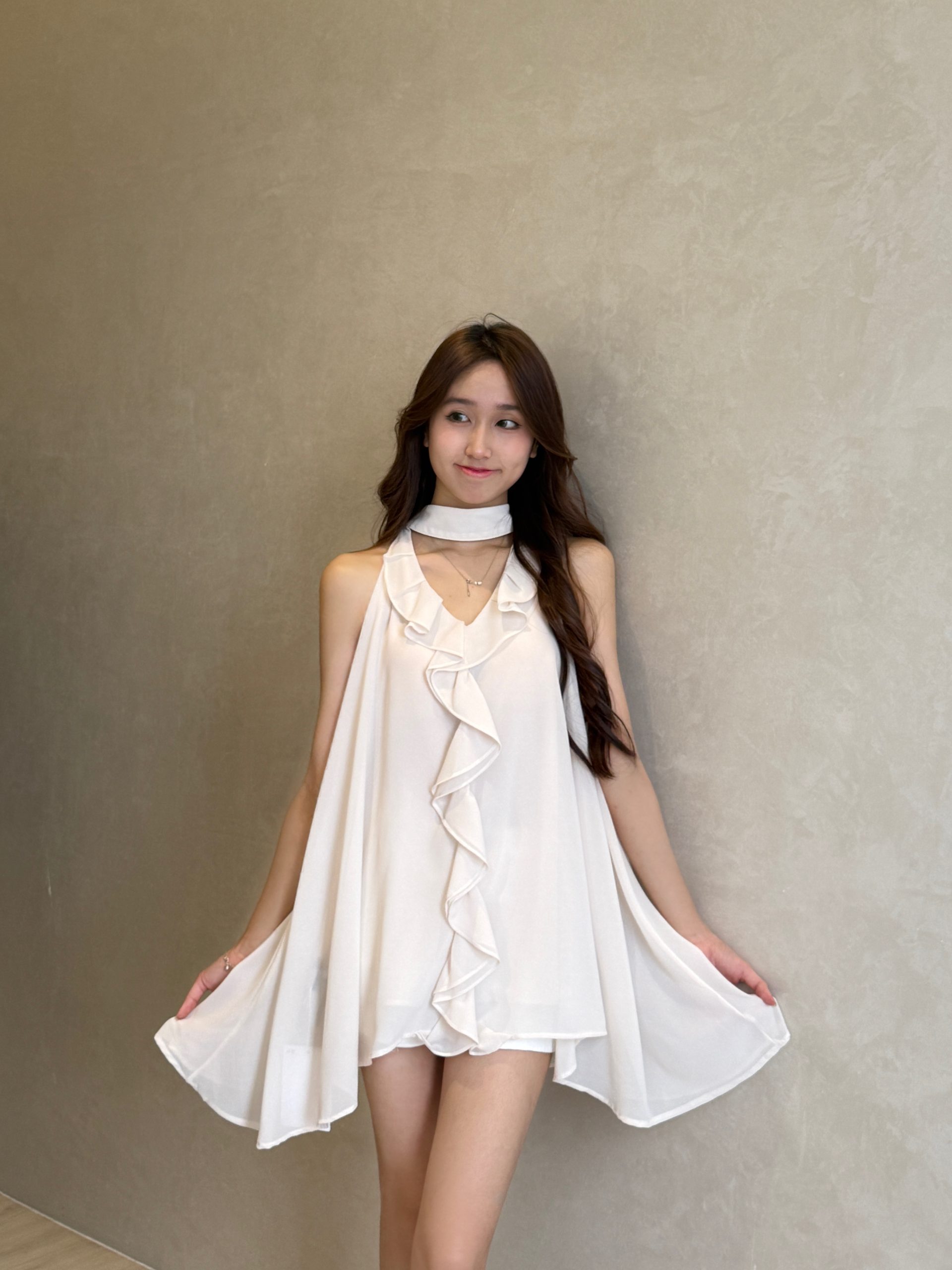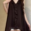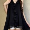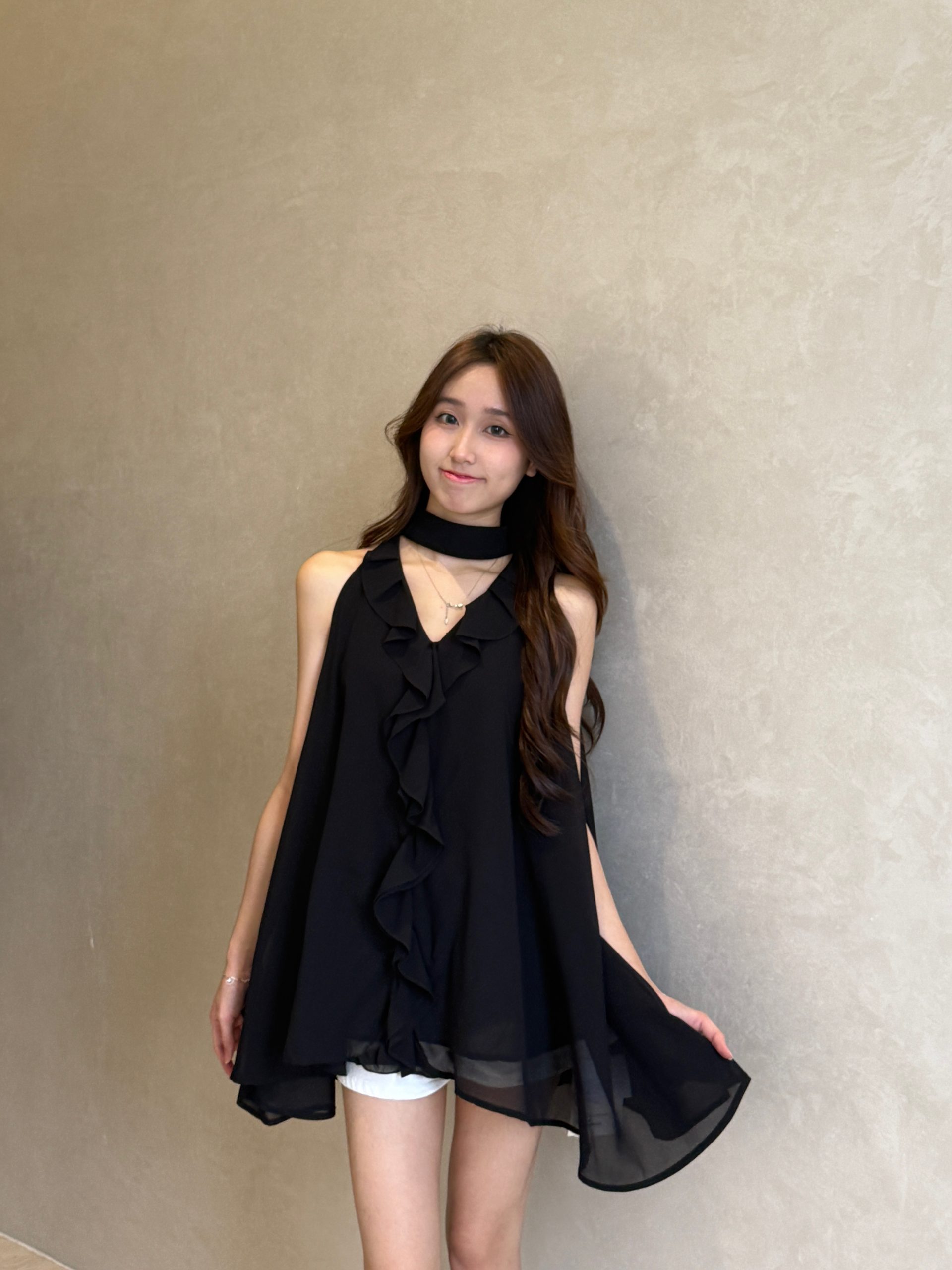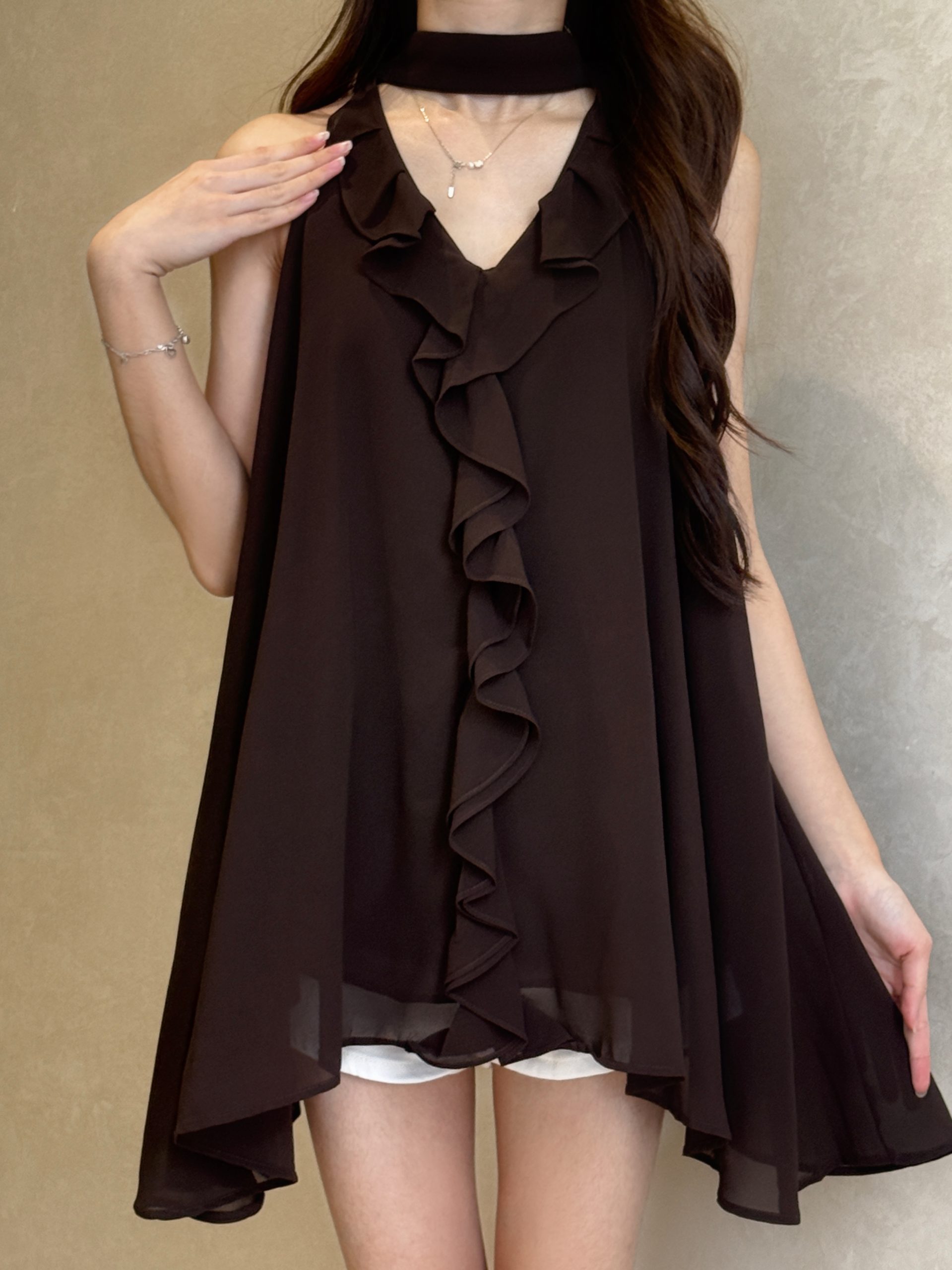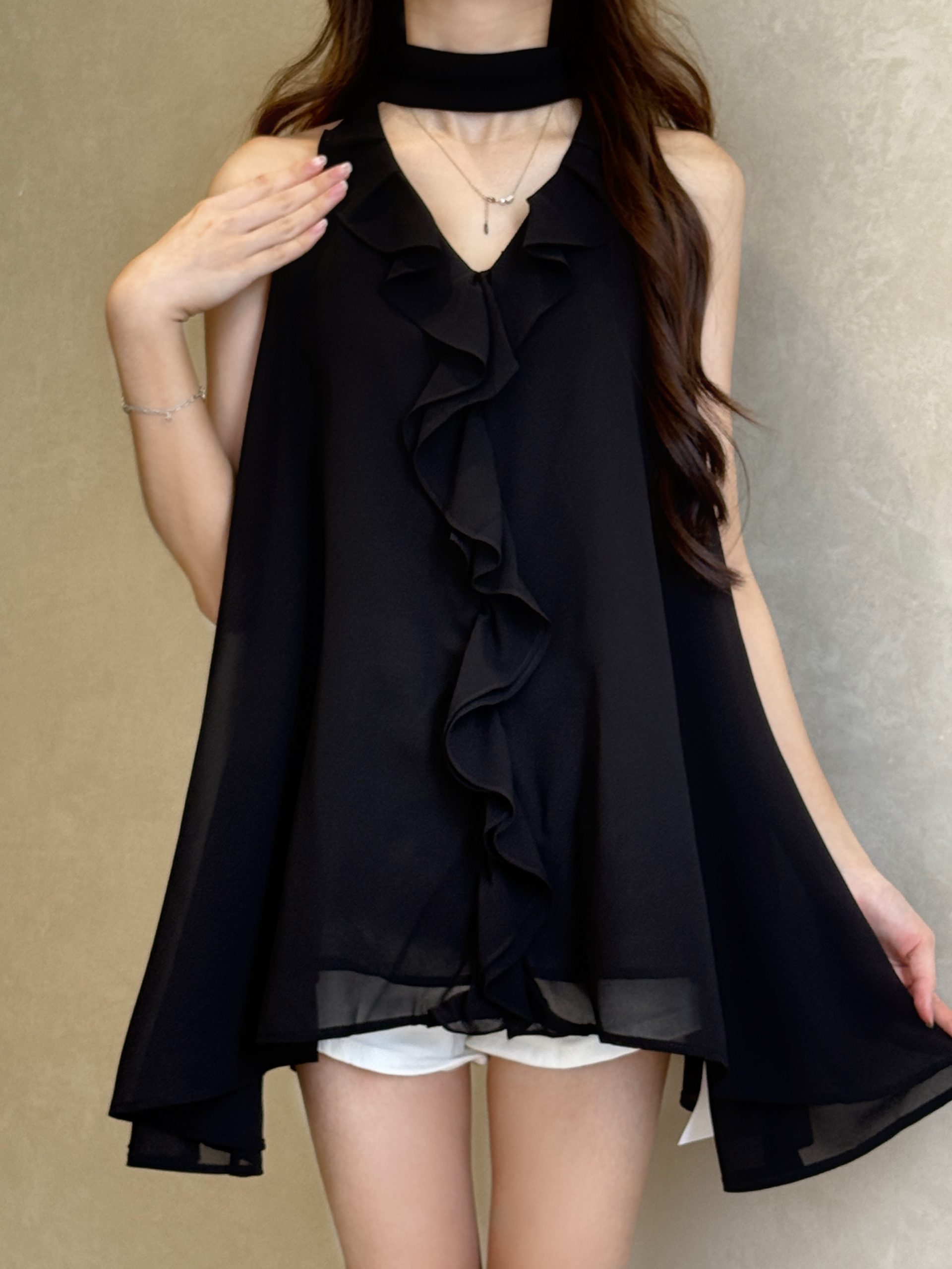 气质荷叶边无袖挂脖上衣
